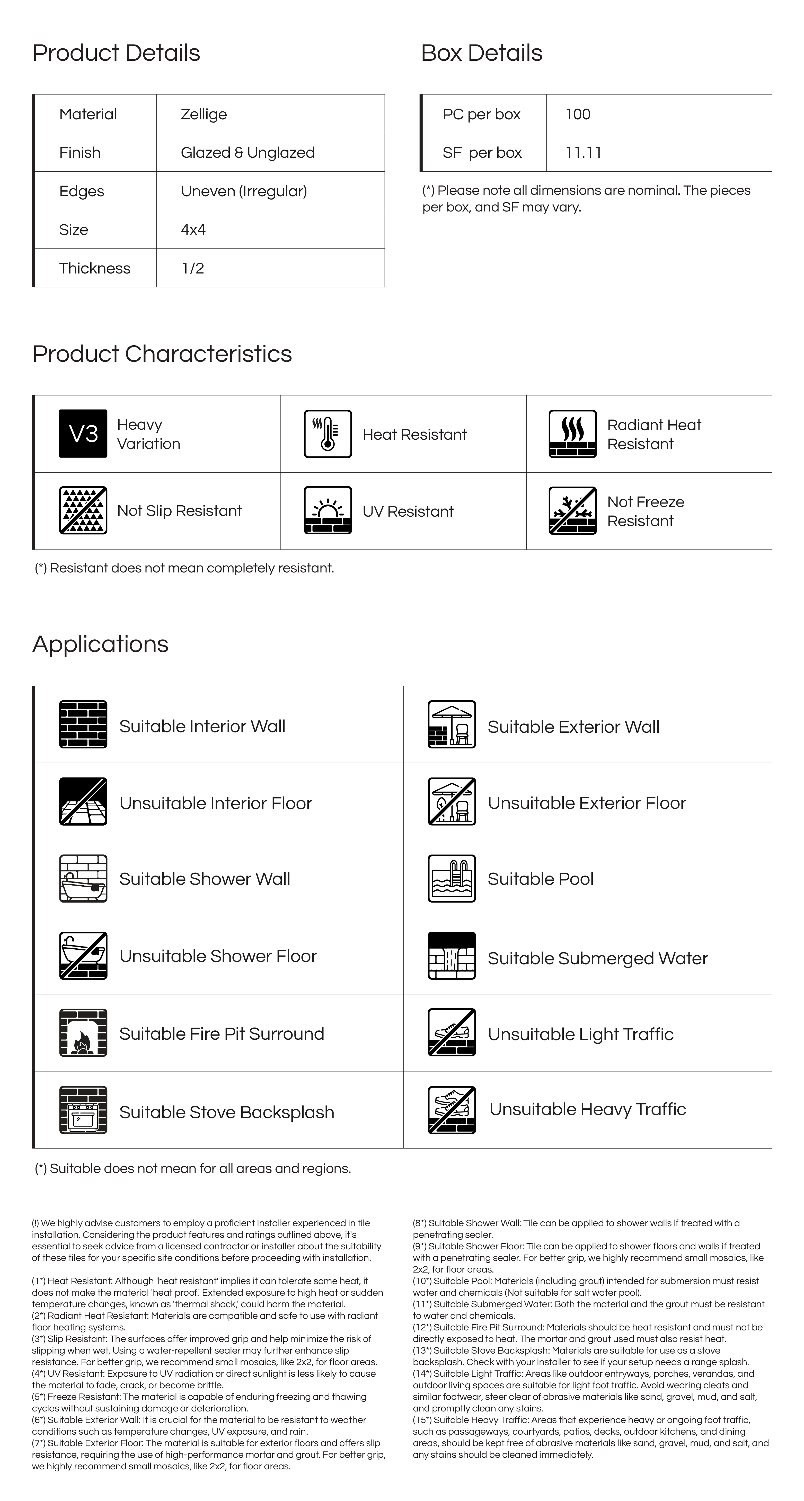 Note: Zellige tiles have slight thickness variation, you can adjust this while installing.
