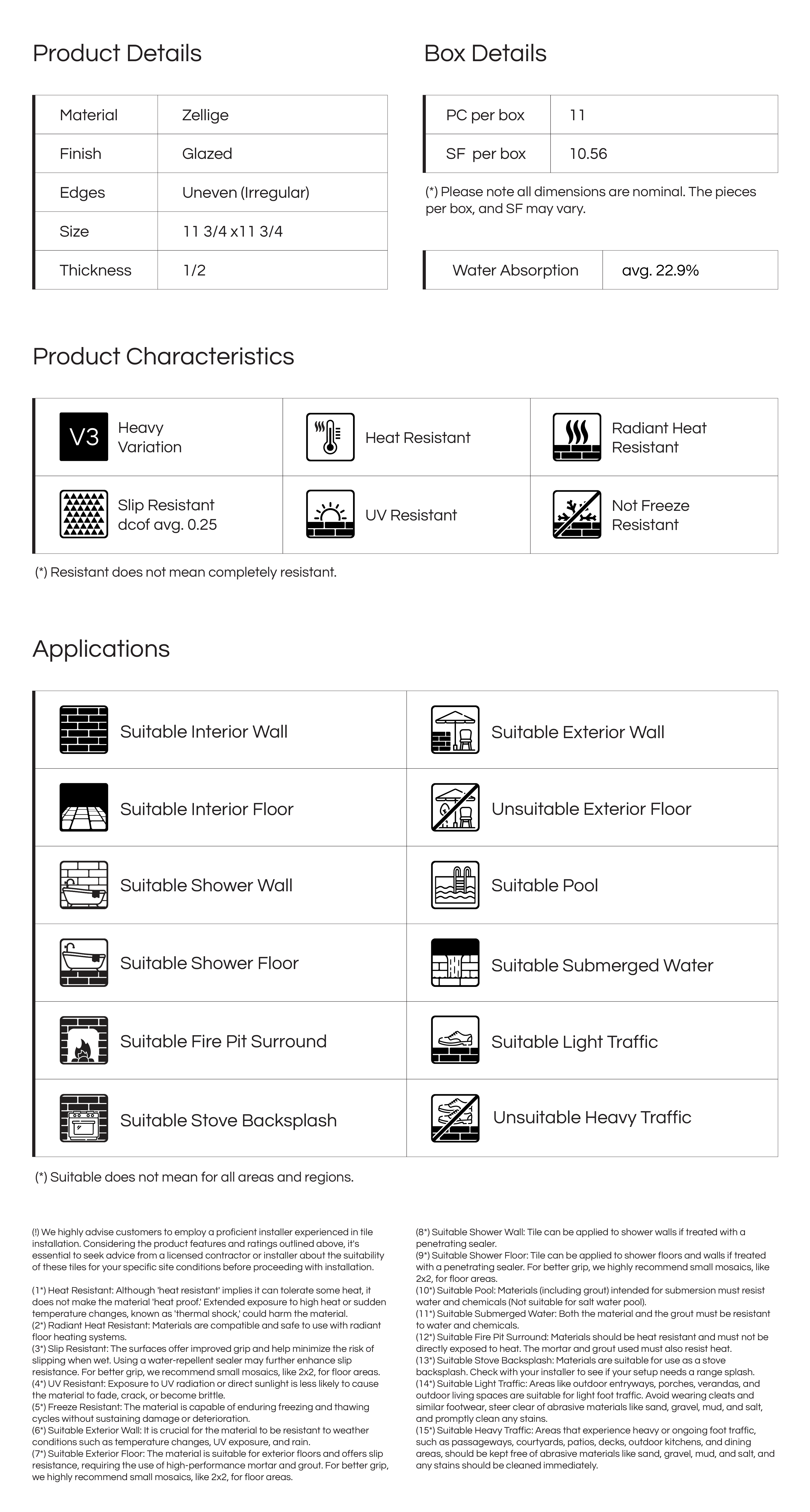 Zellige mosaic tiles are celebrated not despite their imperfections, but because of them. Each tile is handmade using traditional techniques, which results in natural variations in color tone, surface texture, edge shape, and glaze application. You may notice tiny cracks (crazing), uneven surfaces, chipped corners, or slightly irregular shapes—these are not considered flaws, but rather the hallmark of authentic craftsmanship. These imperfections bring depth, movement, and a rich tactile character to any installation, making every surface beautifully unique. No two Zellige tiles are ever exactly alike, which is what gives them their unmatched warmth and artisanal charm.