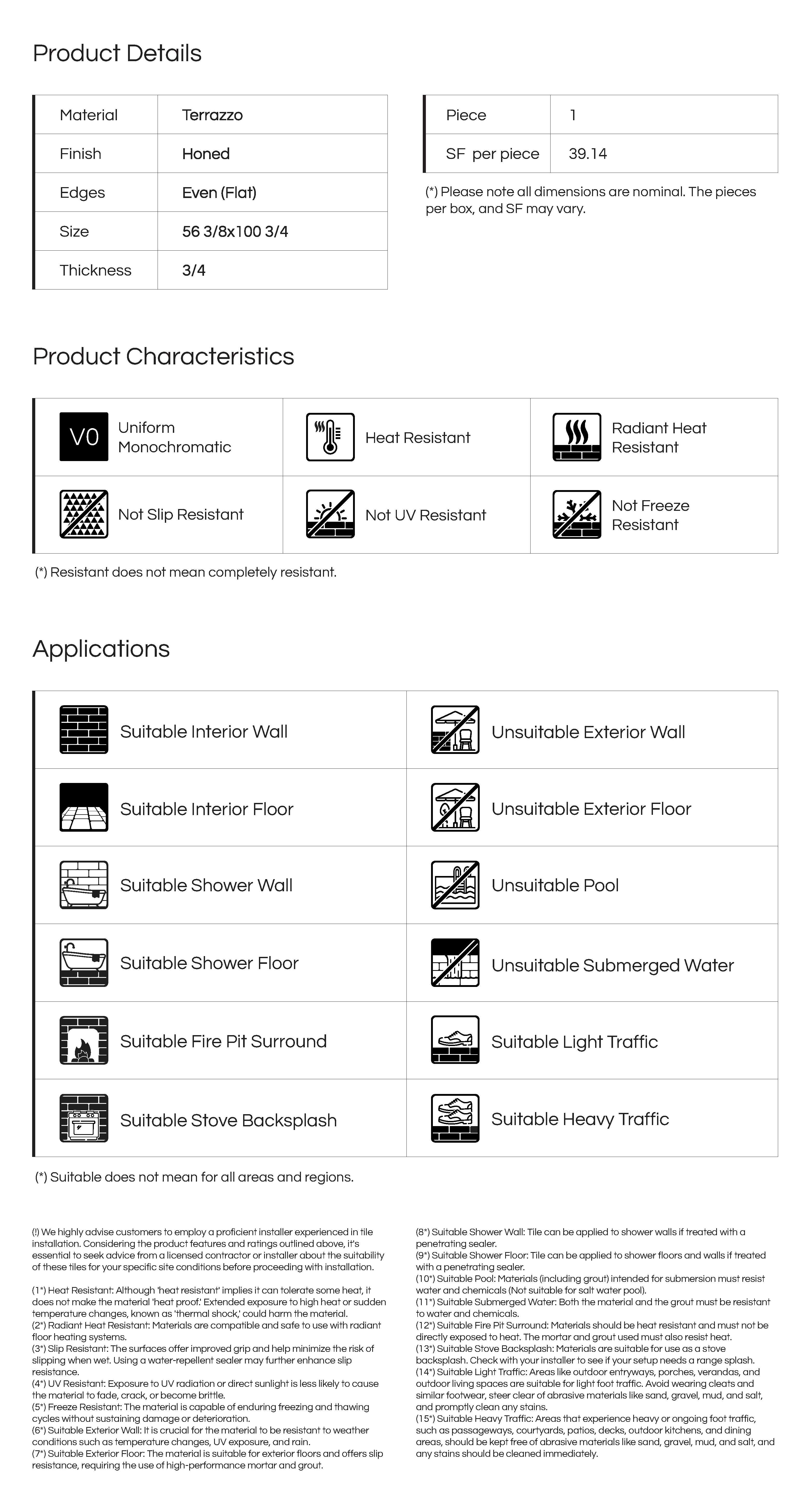 - Slab: 56 3/8x100 3/4 inches (Thickness 3/4)